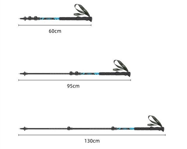3段階で長さを調節可能で、持ち運びに便利です。わずか165gの本体重量ながら、強度と携帯性のバランスが優れ、様々なコースや使い方に対応できます。