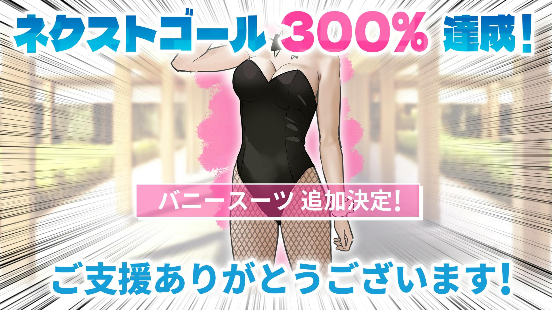 「VRな彼女」クラウドファンディングに多くのご支援をいただき、誠にありがとうございます。皆様のご協力のおかげで、300%(600万円)のネクストゴールを達成し、ヒロイン「夕陽さくら」にバニースーツをゲーム内に追加することが決定しました!心より感謝申し上げます。