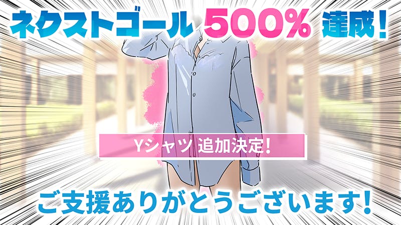今回の達成により、新たな衣装「彼氏のYシャツ」の追加と、シナリオの修正が正式に決定いたしました。ヒロイン「夕陽さくら」が彼氏のYシャツを着用して、シナリオ内に登場するシーンをどうぞお楽しみにお待ちください!これもすべて、皆様のご支援があってこそ実現できたものです。本当にありがとうございます。