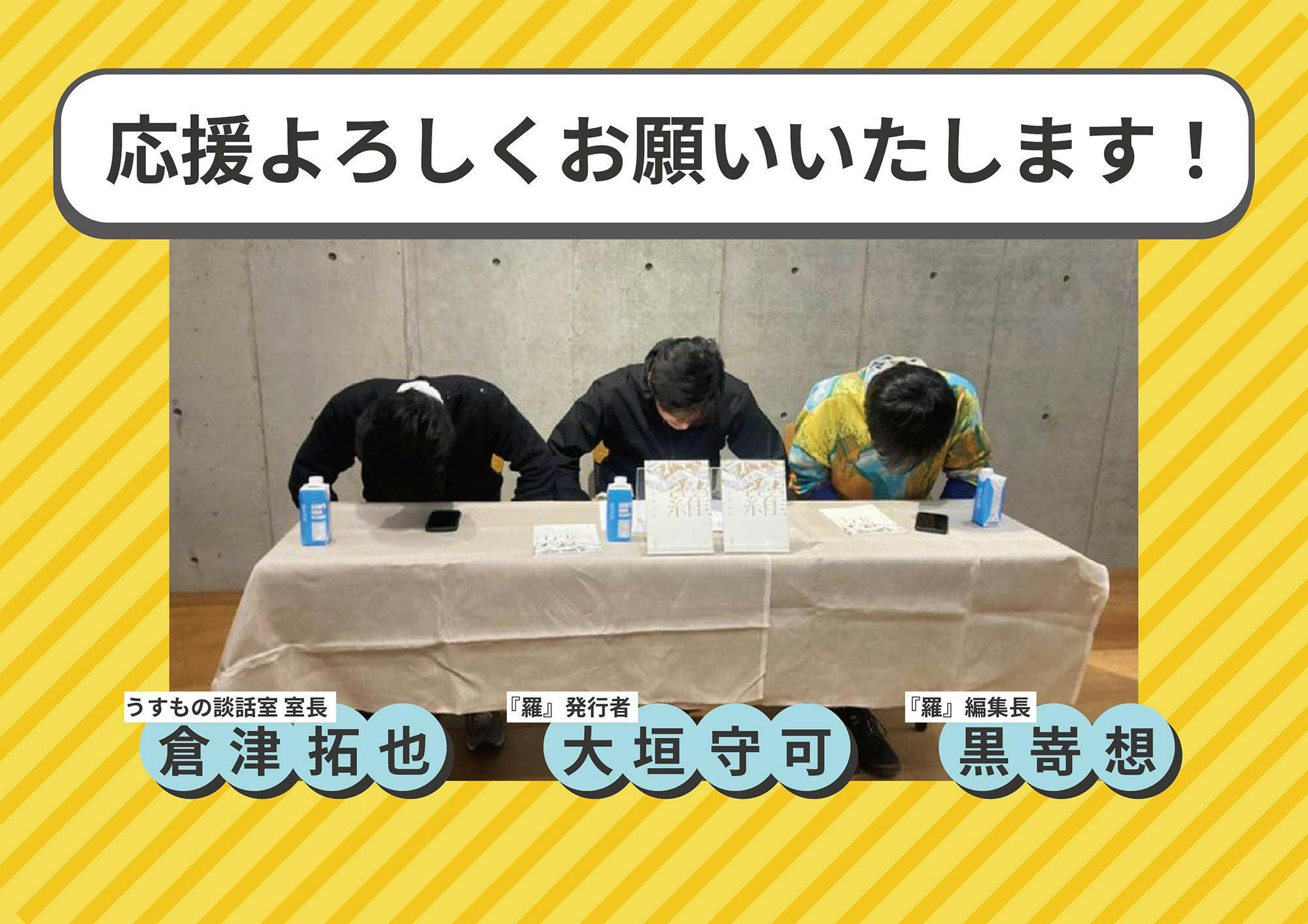 2024年4月9日に、編集長の黒嵜想さん、うすもの談話室室長の倉津拓也さんとで『羅うすもの』説明会を開催いたしました。