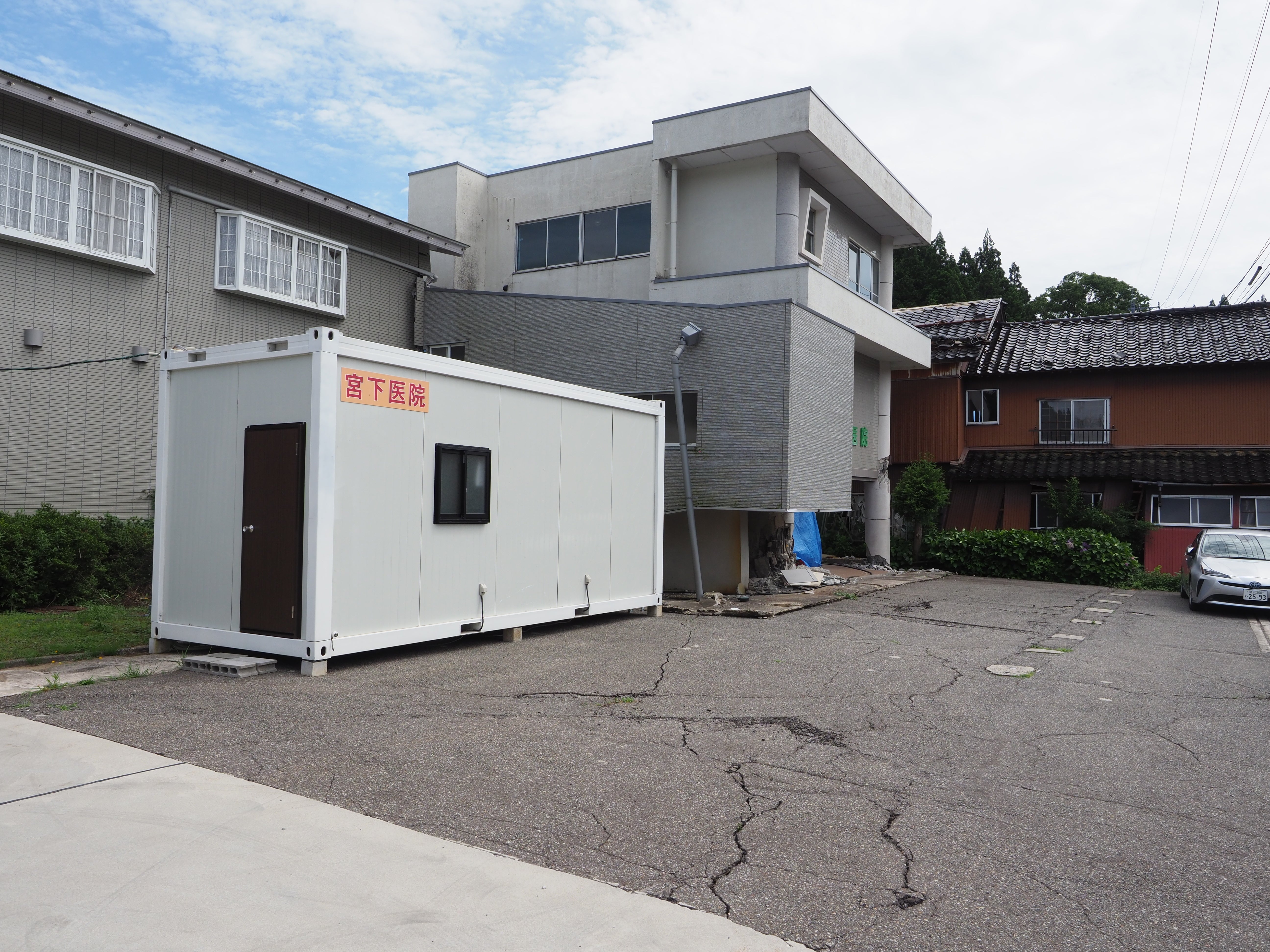 2024/07/20 13:29復興に向けてスタート宮下医院様がコンテナ式の仮設診療所を設置されました。水曜日と木曜日の午前中だけ、普通の診療も開始されました。今まで通り、かかりつけの患者さんの診療は午後も行っていらっしゃいます。月に一度、木曜日の午後は金沢市内の医師会にも参加されていらっしゃいますので、木曜日の午後については診療所にお電話で確認してください。鉄筋コンクリートの建物の解体の準備は整いました。新しい診療所の設計も詰めの段階まで来ました。皆様のより一層の温かいご支援、よろしくお願い申し上げます。 もっと見る