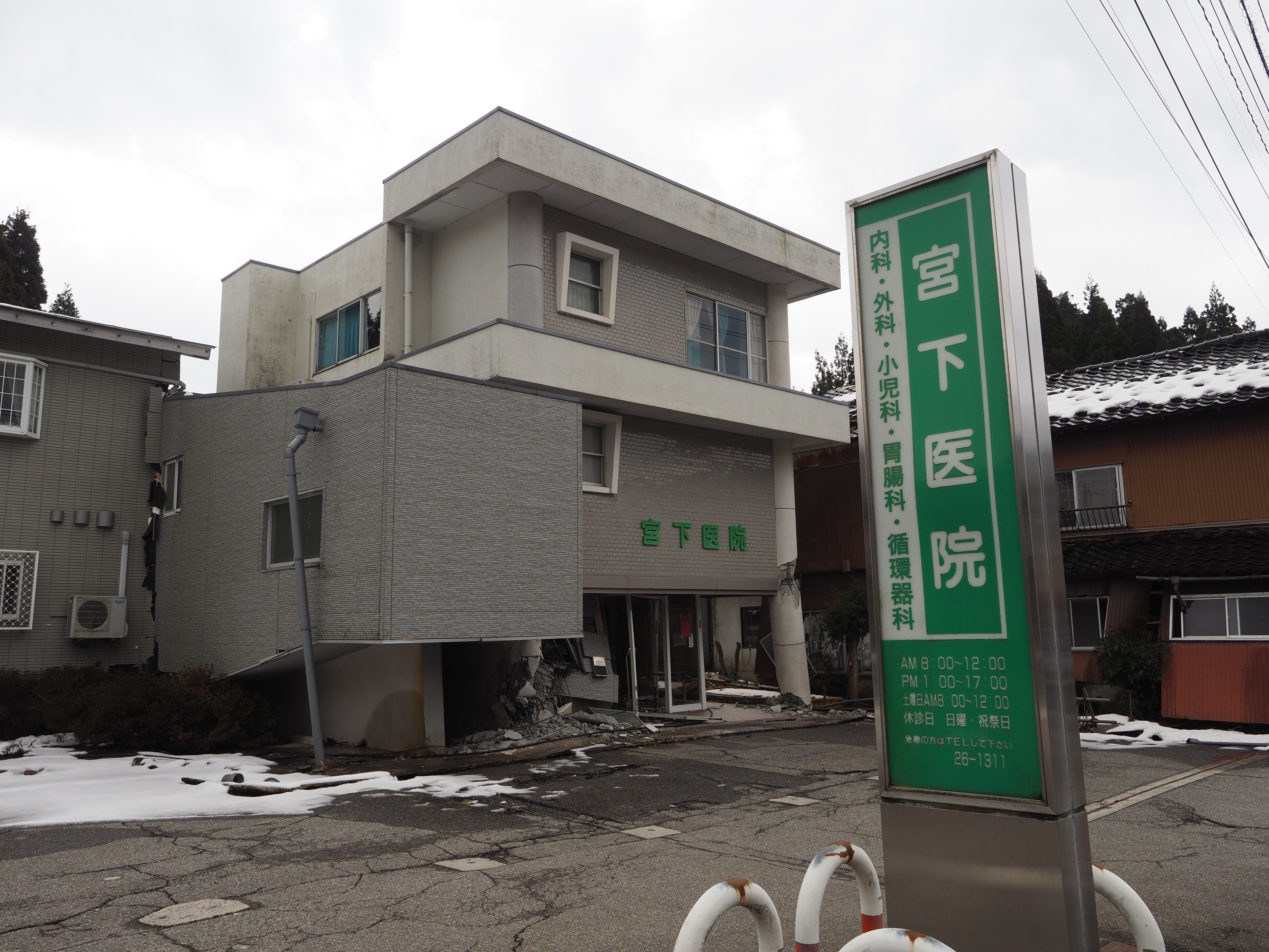 復興に向けてスタート宮下医院様がコンテナ式の仮設診療所を設置されました。水曜日と木曜日の午前中だけ、普通の診療も開始されました。今まで通り、かかりつけの患者さんの診療は午後も行っていらっしゃいます。月に一度、木曜日の午後は金沢市内の医師会にも参加されていらっしゃいますので、木曜日の午後については診療所にお電話で確認してください。鉄筋コンクリートの建物の解体の準備は整いました。新しい診療所の設計も詰めの段階まで来ました。皆様のより一層の温かいご支援、よろしくお願い申し上げます。
