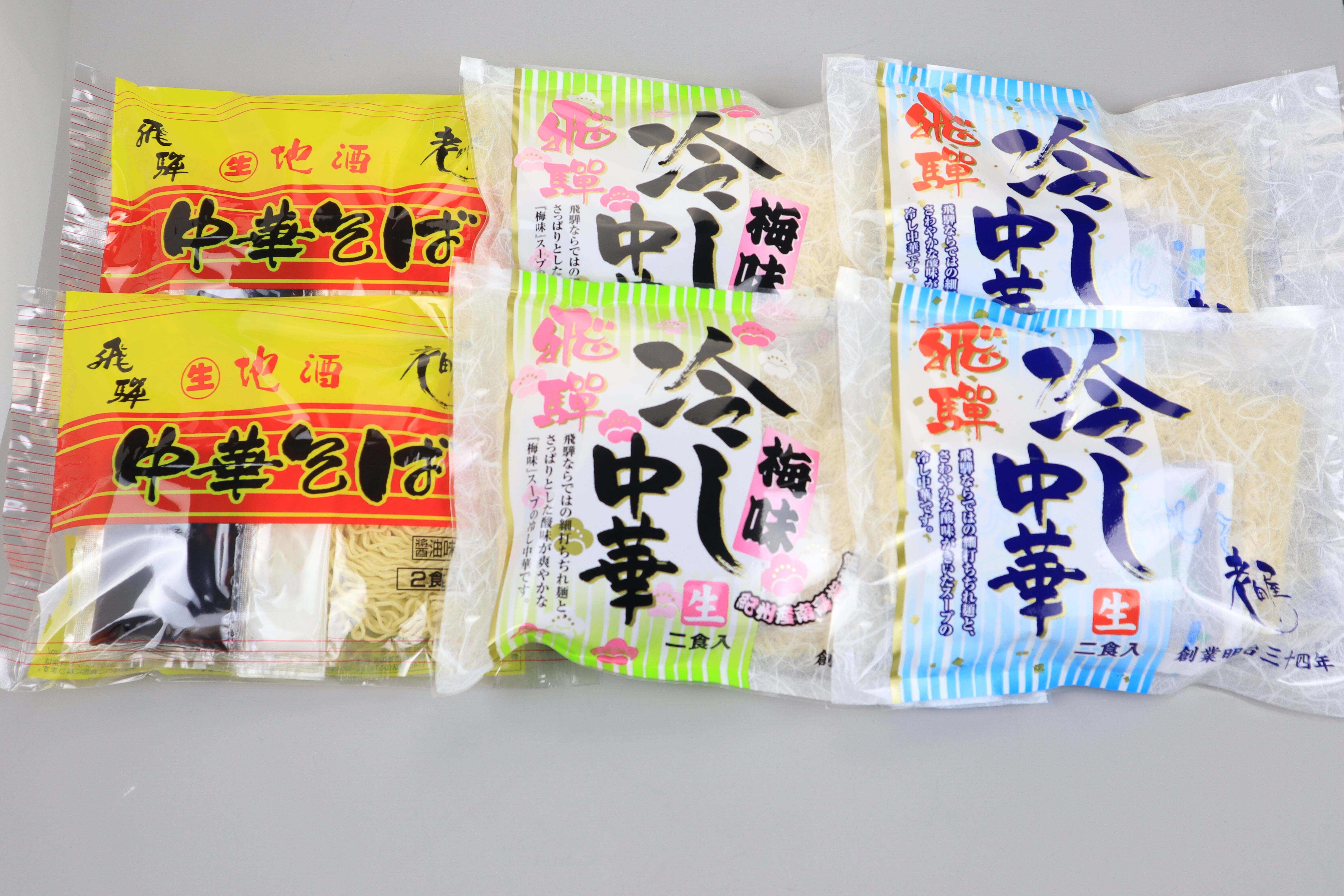 飛騨の定番、中華そば。あっさり醤油スープと茹で時間1分の細ちぢれ麺は相性も抜群!具材付きなので忙しい時にも助かるセットです。