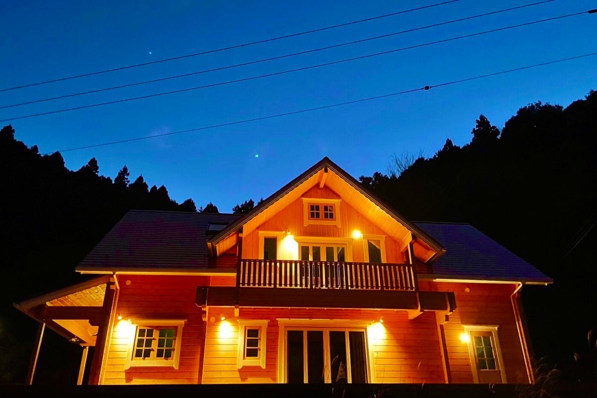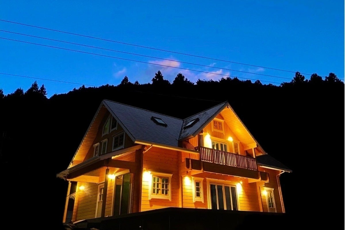 ログハウスは今年2月に完成。