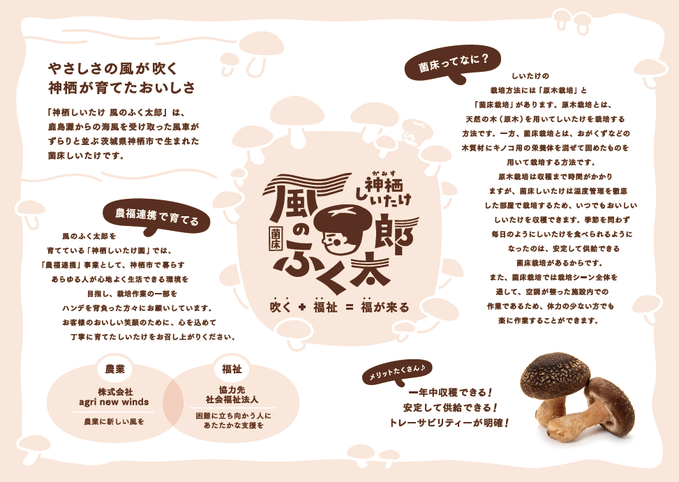 しいたけ可愛い! ”風のふく太郎”とても美味しい! を心に抱いて進めてまいります。