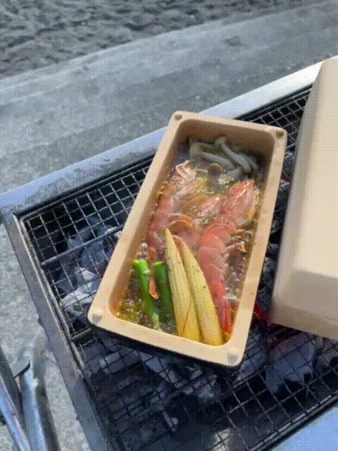 Bricknicは、肉を焼いてる横で、オプション的に違う料理を楽しんでもらうのもありですが、Buricknicを2〜3個仲間で持ち寄り、Bricknicだけの料理でも十分に1日楽しめます。そんなに手間をかけず具材をBricnicに入れ蓋をし、待っている間は仲間と色々な話をしながら盛り上がる。