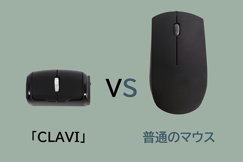 従来型は大きいため、狭い太ももや、ノートパソコンの隅で使うことはできませんが、「CLAVI」の場合は狭いところでも使えます。