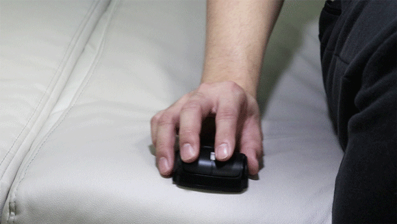 普通のマウスが操作できないところでは指マウスに変換し、太ももなどで操作できます。