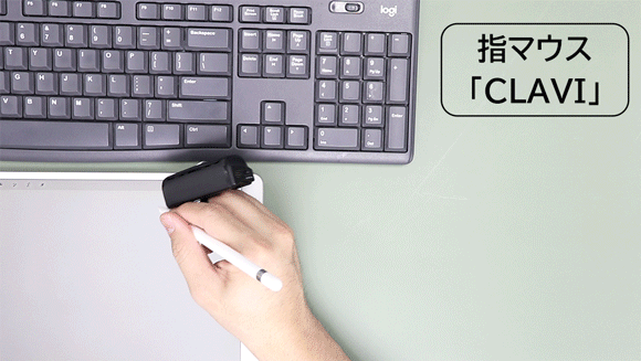 「CLAVI」のセンサーは90度回転でき、瞬時に指マウスに切り替えられます。