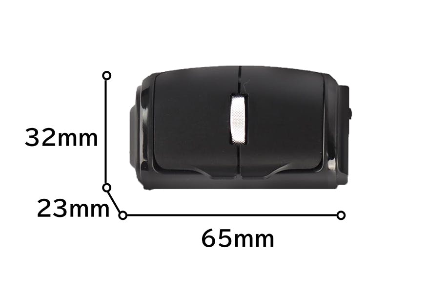 マウスの構造を小さくするため、従来型の後部を捨てて、センサーエリアを前部の横に変更することで、マウスを小型にすることができます。