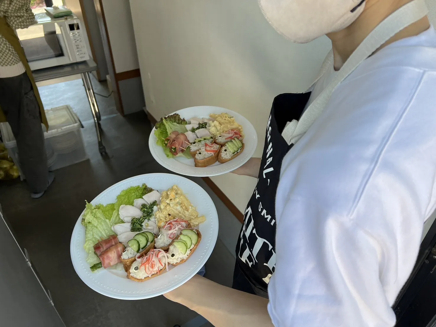 見た目の可愛らしさはもちろん、栄養士を目指す学生の皆さんで考えた栄養バランスは完璧で、参加してくれた19名のこどもたちもおいしいかわいいと大喜びでした。中には苦手だった鶏肉が食べられるようになった子も。