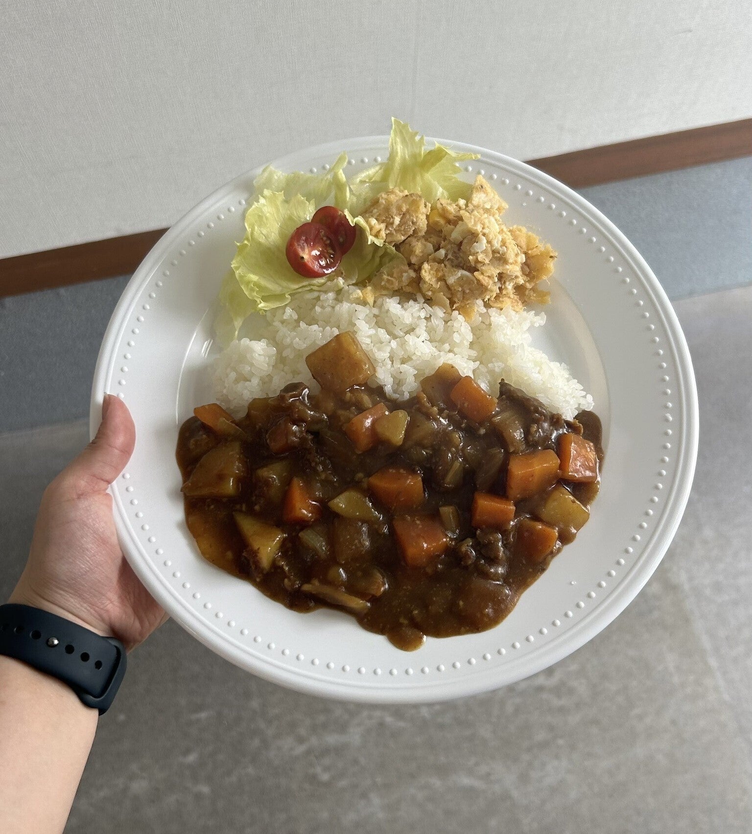 前回のアドバイスを参考にトマトやカレーの具も小さく切って、ボランティアの学生さんたちの食材応用力に感動の傑作リメイクカレーに仕上がりました!