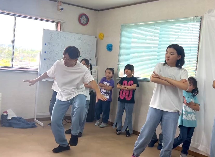 「もみじまんじゅう」とか「スーパーマン」など、面白い表現でこどもたちにもわかりやすい指導で、ダンス教室のおにいさんやおねえさんたちにも教えてもらいながら楽しくダンスができました。