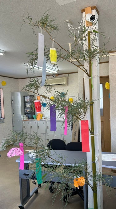 今回は七夕イブの実施ということで、兵庫県三田市の企業様のご協力でいただいた笹に思い思いの願い事を書いてかざりました。