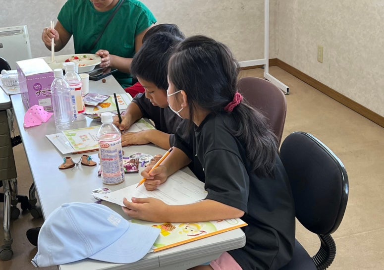 宿題を持ってきた子や、お絵描きをする子、お兄さんお姉さんに折り紙を教えてもらう子など、それぞれやりたいことを自由にできる時間。