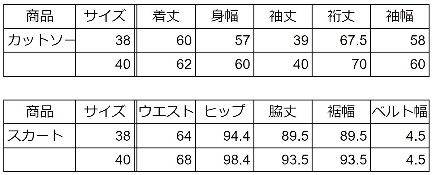 CAMPFIRE リターン商品サイズ表 (cm)