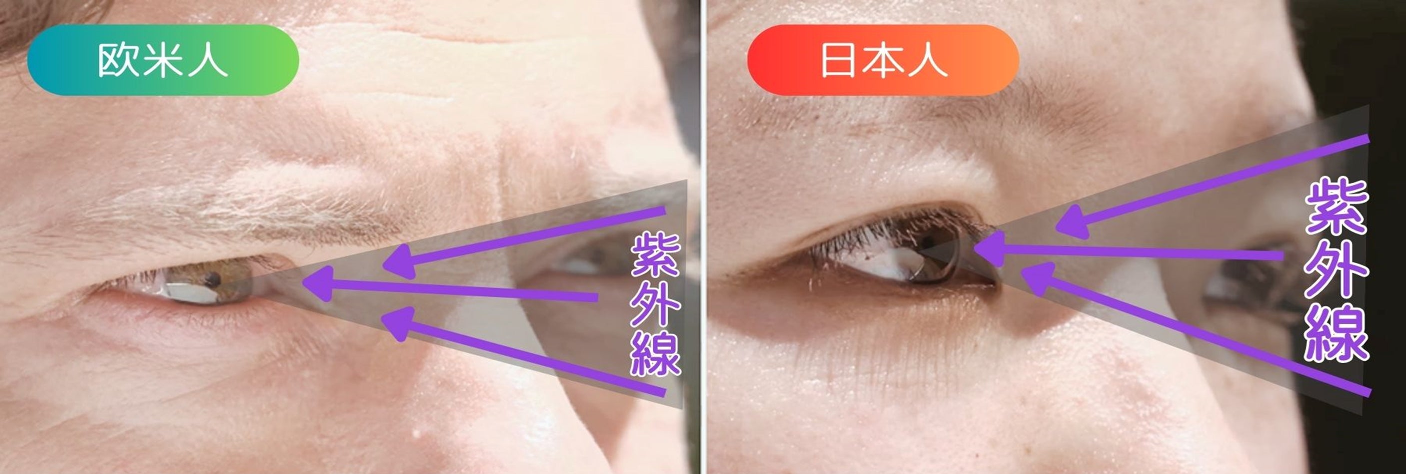 実は「目の周りの骨格の違いにより、日本人の方が欧米人に比べて約1.6倍も紫外線が目に入りやすい」と言われています。