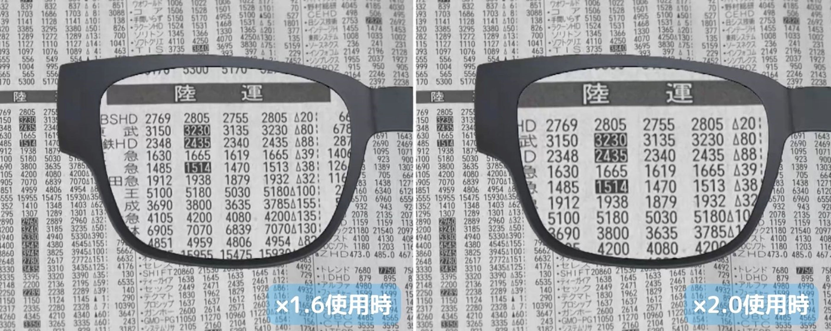 1.6倍と2.0倍の比較。これほど見やすく!