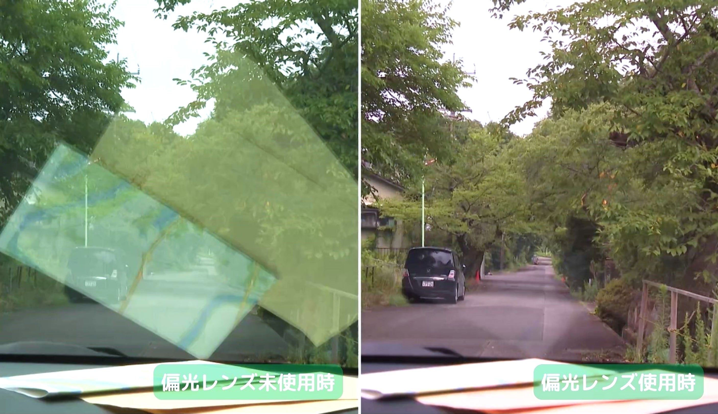 クルマのフロントガラスへの映り込みも、こんなに差があります。