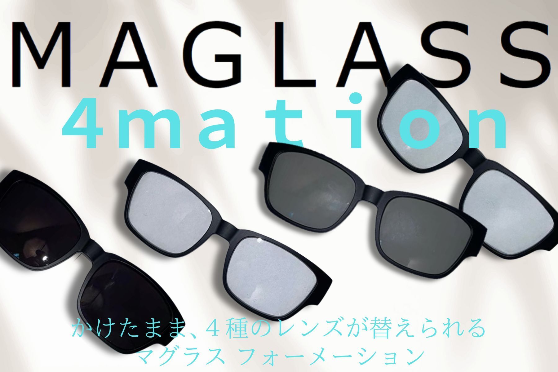 マグラス最大の特長、マグラス 4(フォー)メーション!愛用の眼鏡はそのままに、4種のレンズの付け替えだけで目と視界をサポートします。