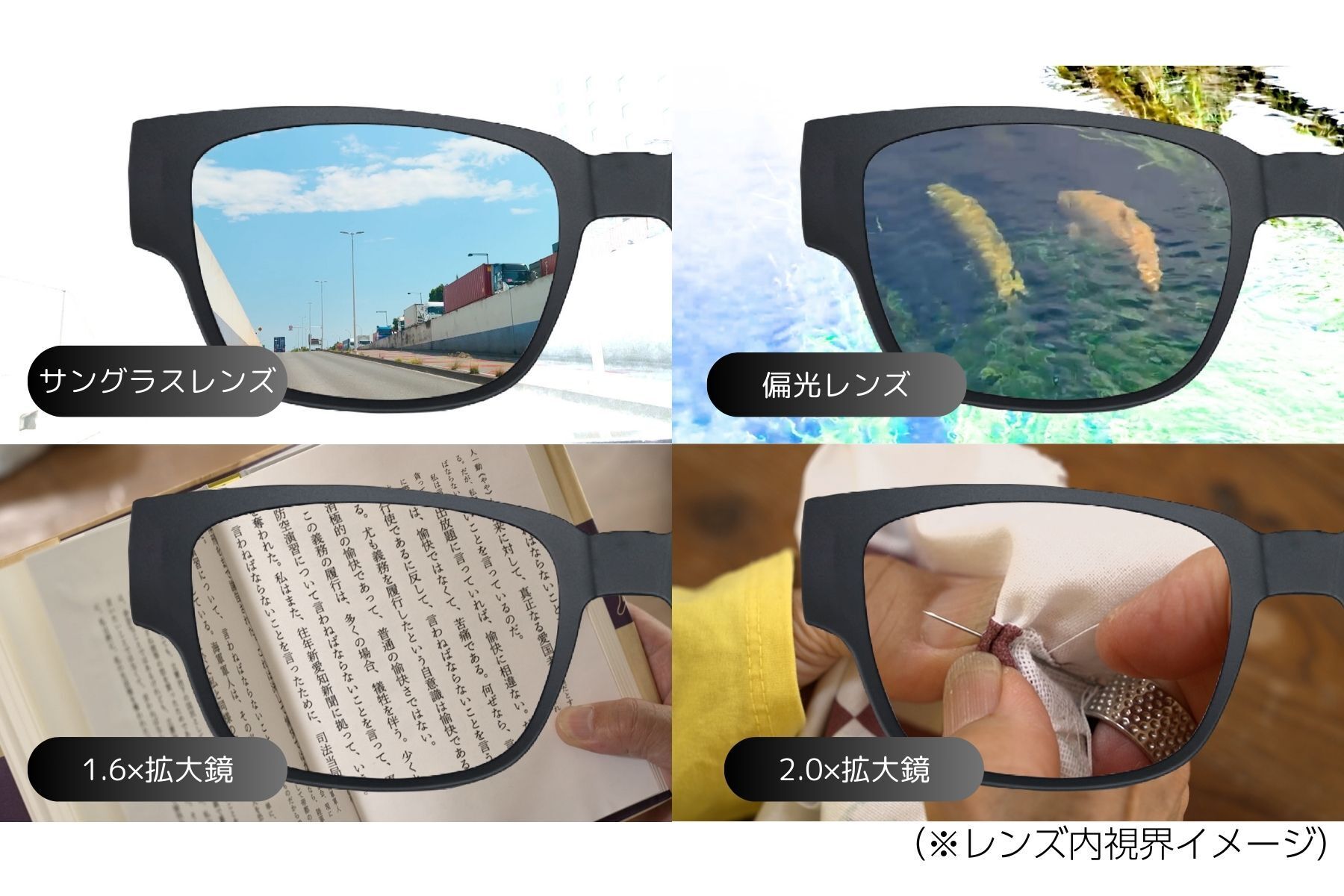 4種のレンズで視界をサポートする、眼鏡の上からかけられるオーバーグラスMAGLASSプロジェクトは【残り5日】 です。お買い忘れのございませんよう!!!4種のレンズがコチラ▼①サングラス②偏光レンズ③④拡大鏡しかも。レンズ付け替え式★