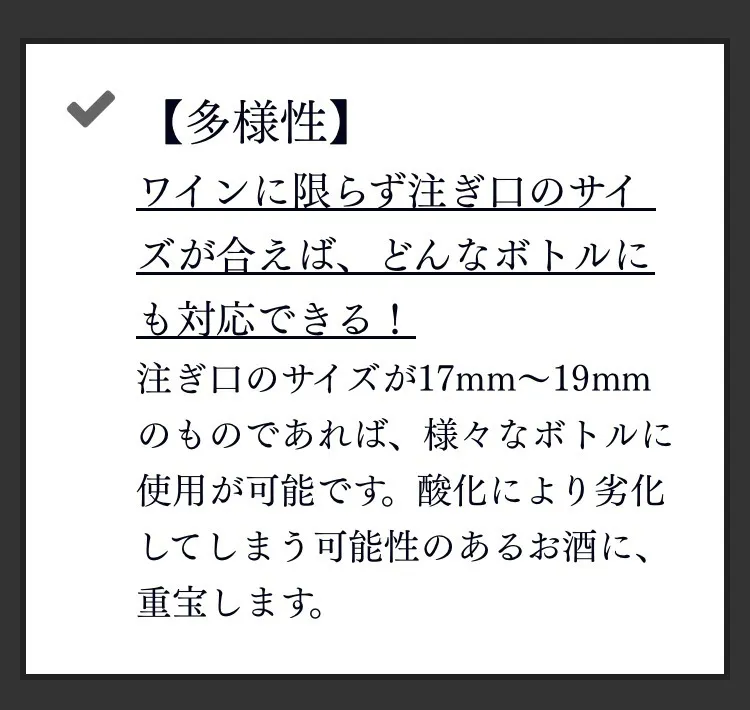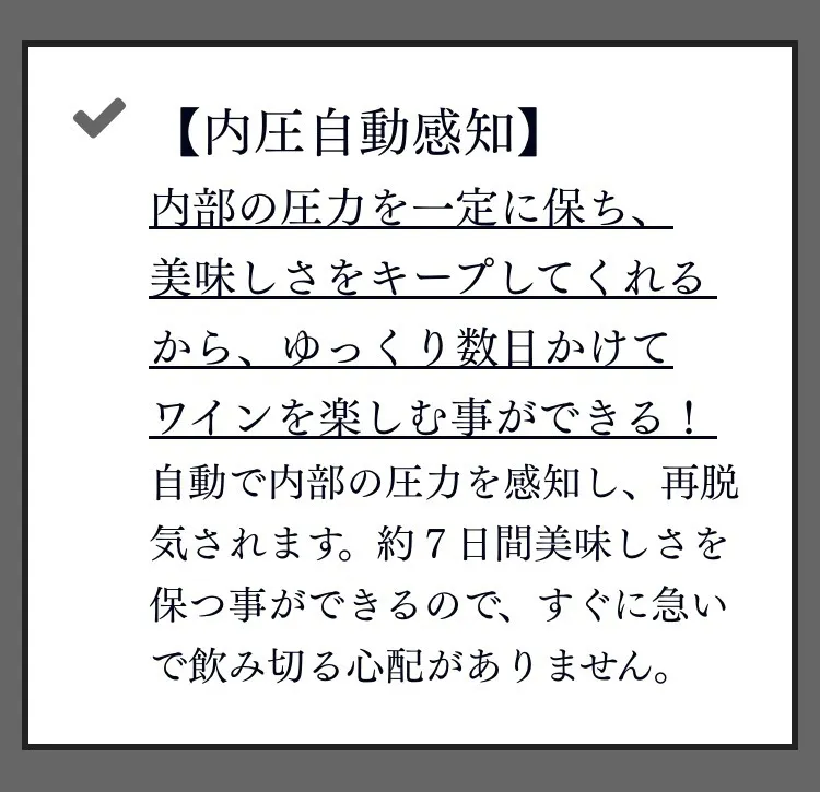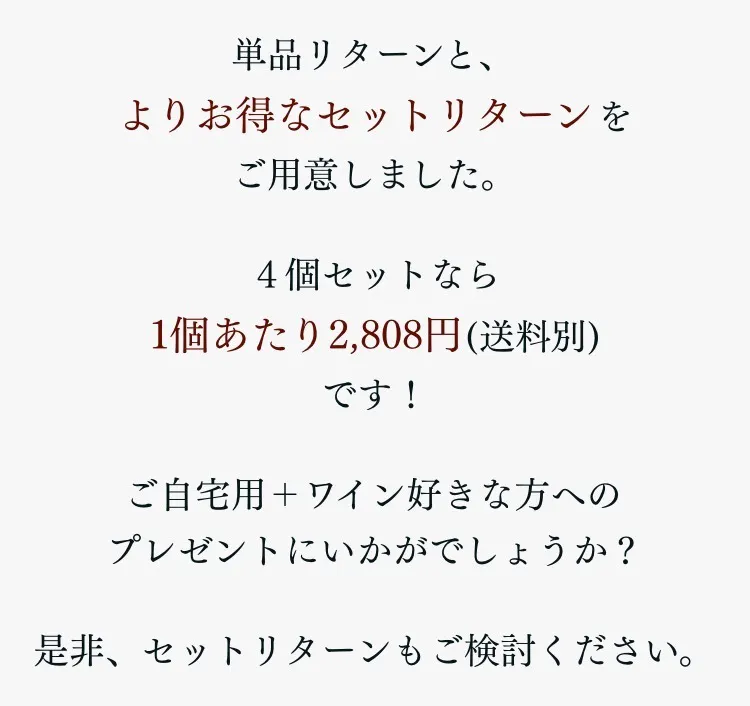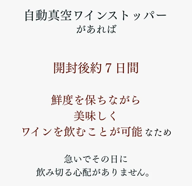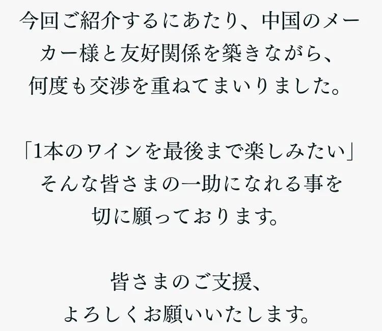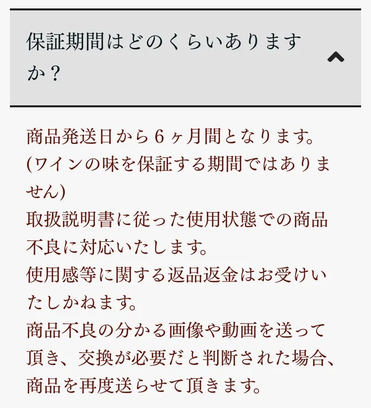 ◼︎ワインの味の変化については、感じ方に個人差がございます。その為、使用感に関する理由でのご返品・ご返金はご遠慮くださいませ。
