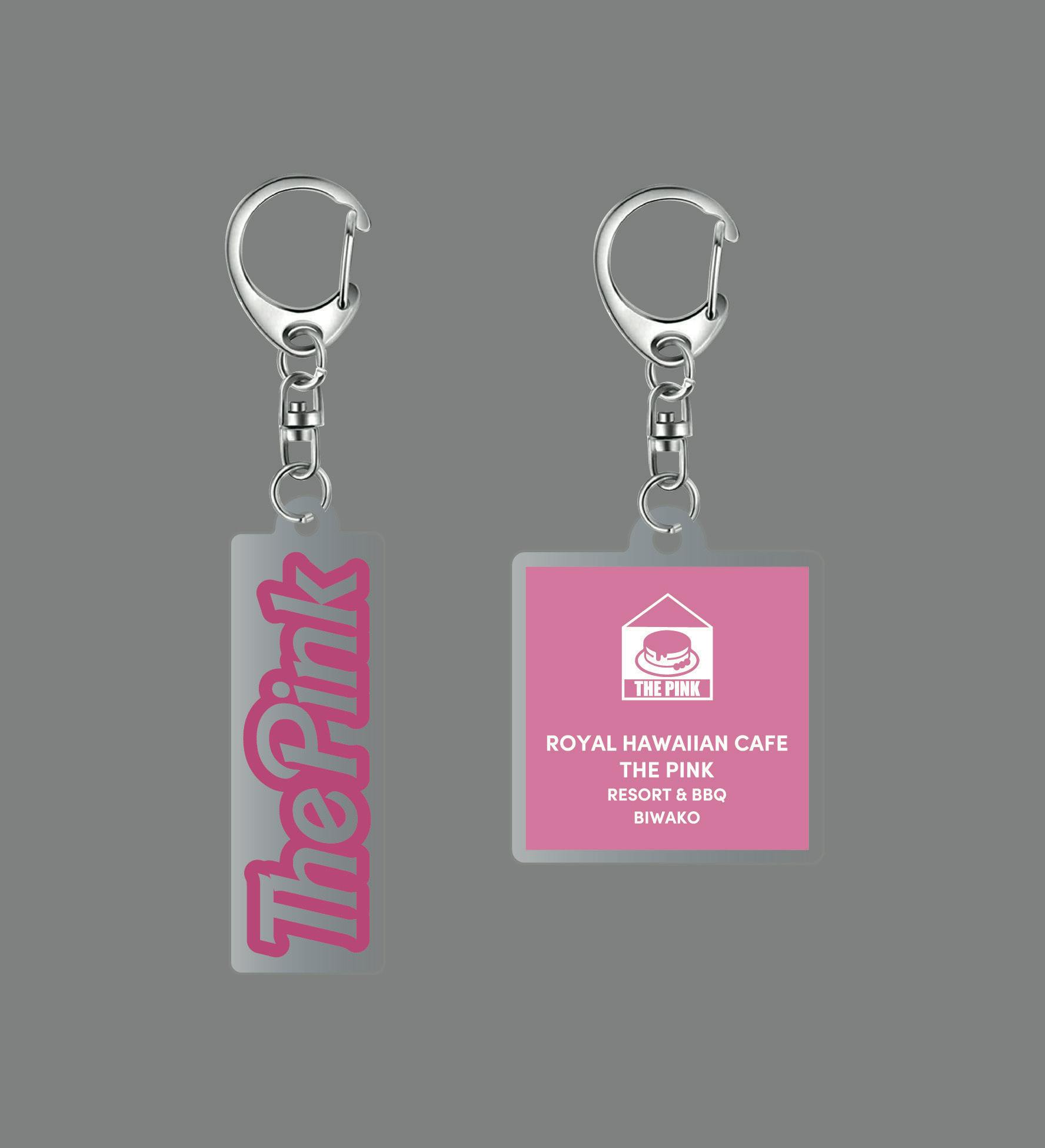 〝THE PINK〟のデザインロゴをあしらった2種類のオリジナルキーホルダーです。2個1セットにてお届けいたします。