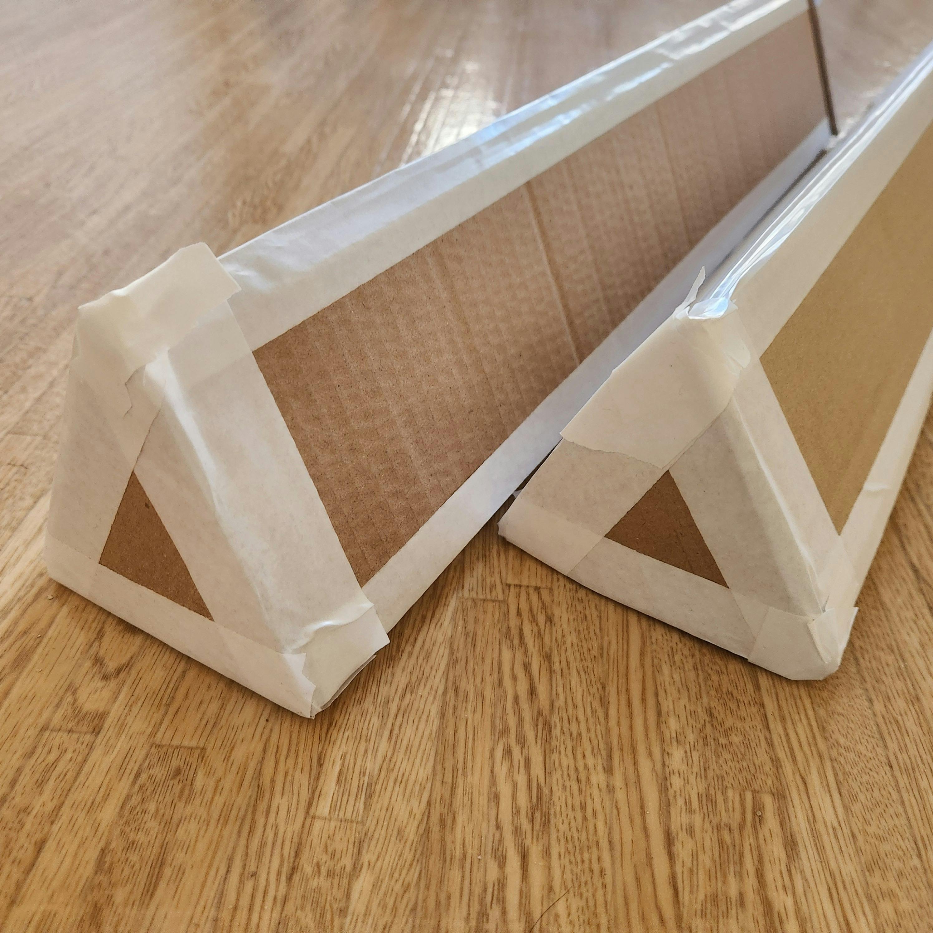 なかなか段ボールにテープがくっつかず、苦戦(汗)