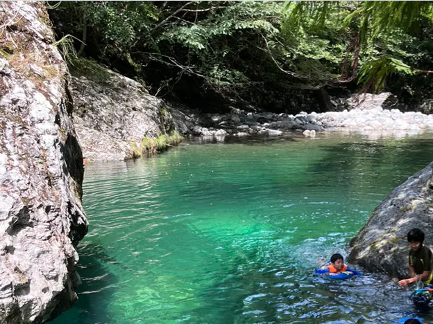 子供たちはこんなにキレイな場所で川遊びができたりします。