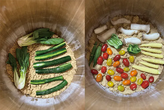 「まるでぬか漬けと共に暮らしている」ように、そして少しの遊び心をプラスして、飽きのこないぬか漬けを作っています。
