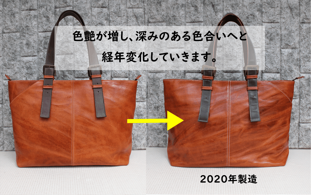また、使い込んでいくうちに中のオイルが移動し、色味が風合い豊かに変化していきます。