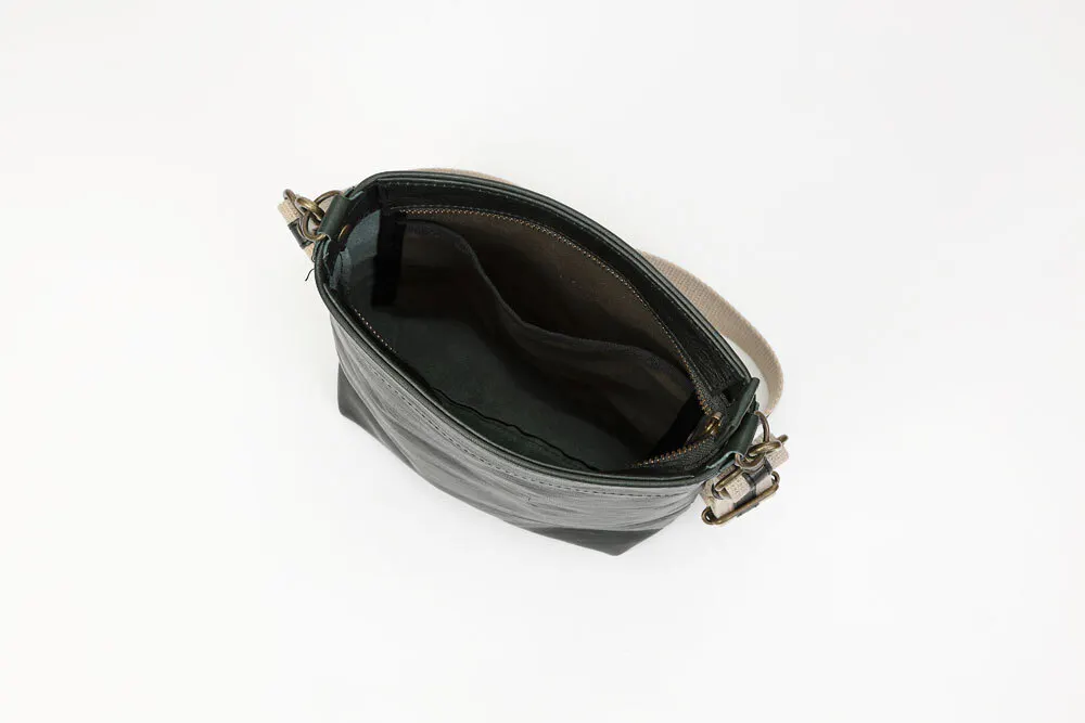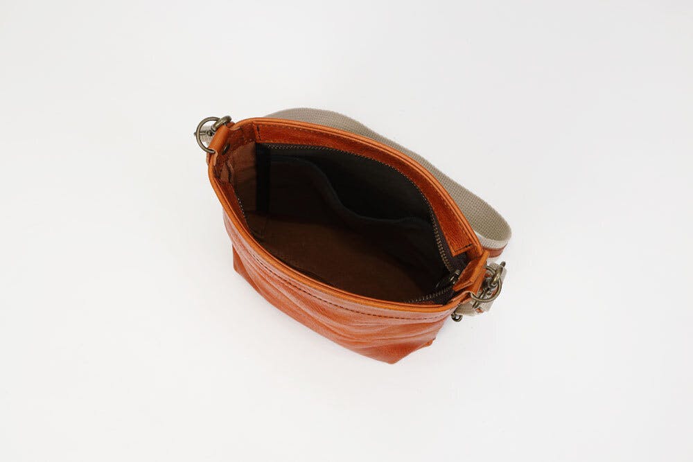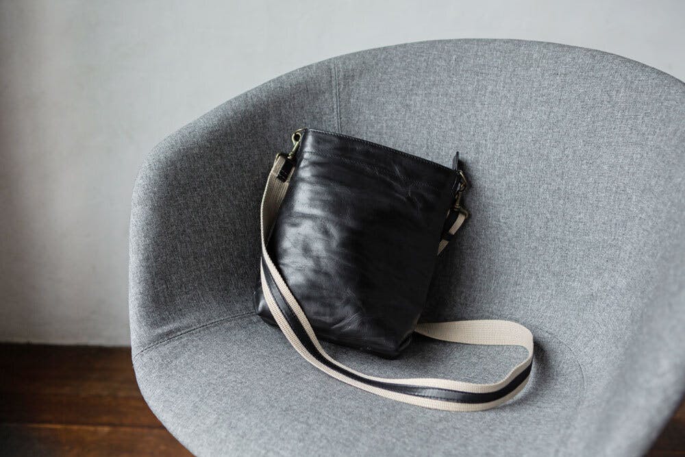 以前はショルダー紐が分割しているタイプで、見た目はお洒落でしたが『ちょっと長さ調整しにくい』とのお声があったので1本タイプに変更しました。