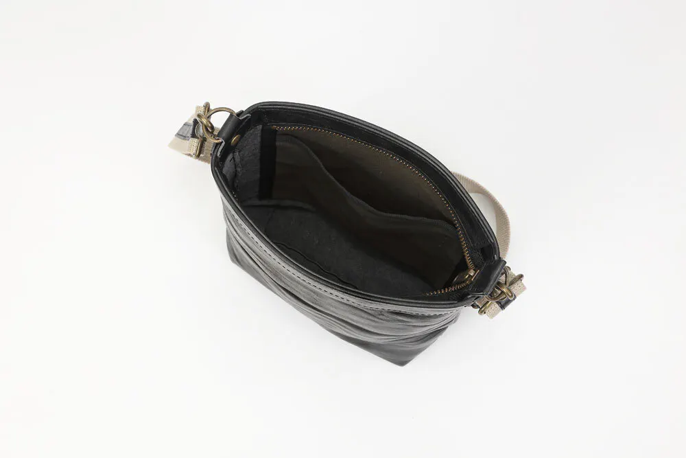 ショルダー紐に同色の革を縫い付けることにより高級感が増し、オシャレポシェットに!