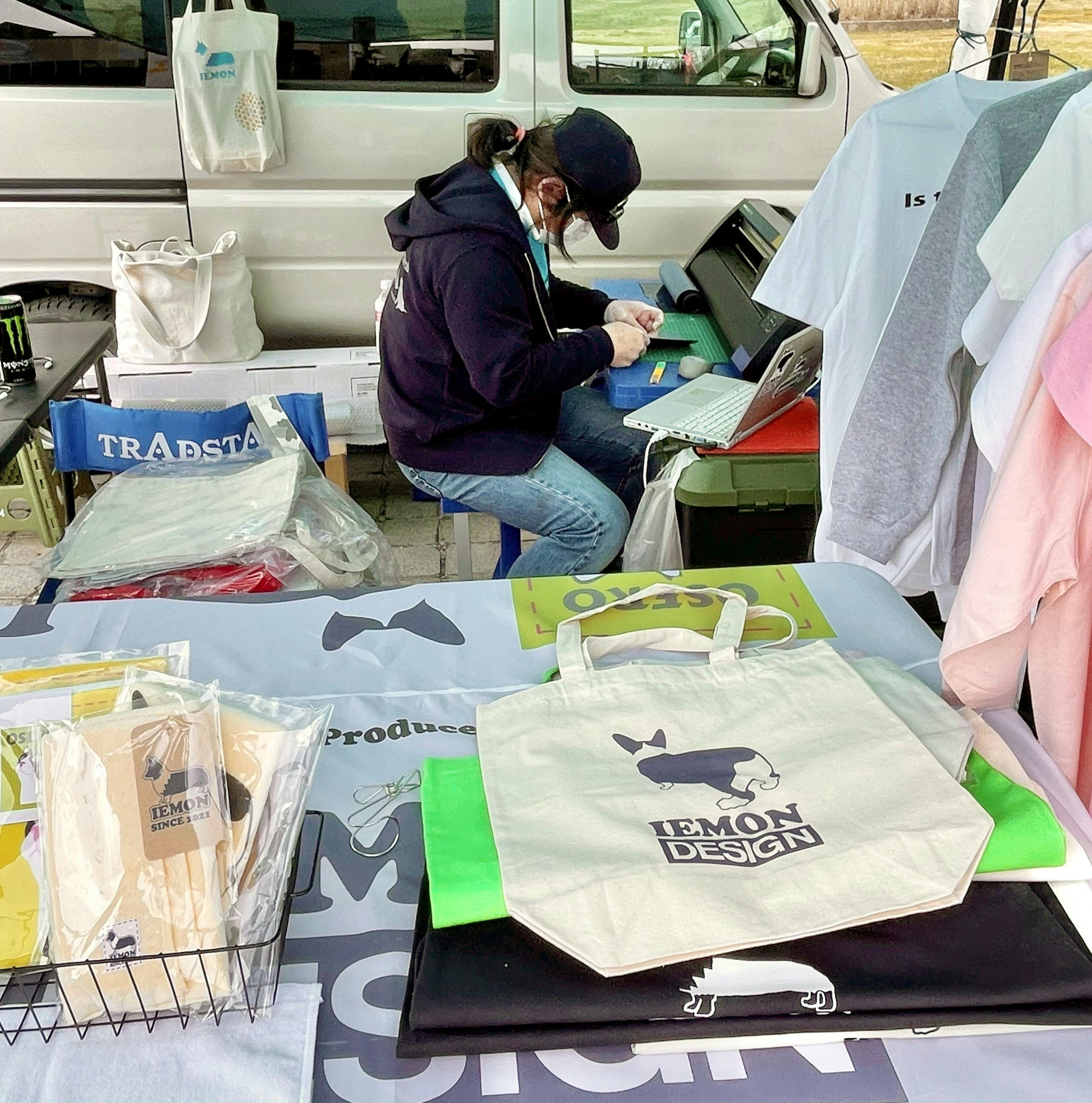 特に屋外で実施するイベントの中には、すでに犬や猫を飼っている方を対象にした「わん・にゃんマルシェ」が多くあります。こうしたイベントで、ご自分が飼っている犬や猫の写真を使ってその場でTシャツ、タオル、ステッカーを作り、販売することができたら、私の本業のスキルが活かせますし、飼い主さんにも喜んでもらえます。ご利用いただいた方に、保護犬・保護猫支援活動についてをお話したり、チラシをお渡ししたりすれば、活動についての認知も広げることができますし、さらにその利益を活動費用に回せば、活動の原資にすることもできます。