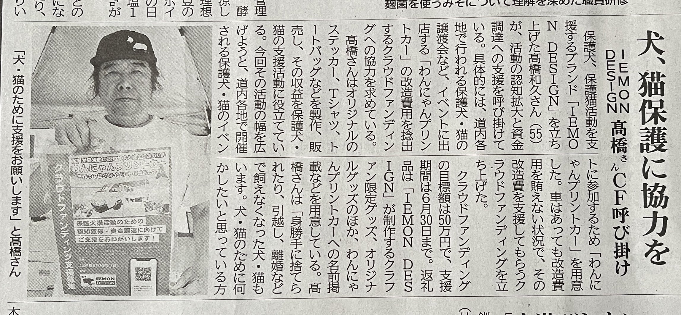 5月3日に釧路新聞に掲載していただきました。保護犬猫活動し支援して行きます。