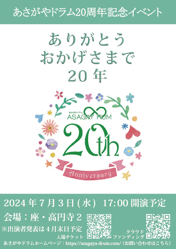 7月3日(水)あさがやドラム20周年イベント『ありがとう おかげさまで20年』開催日!