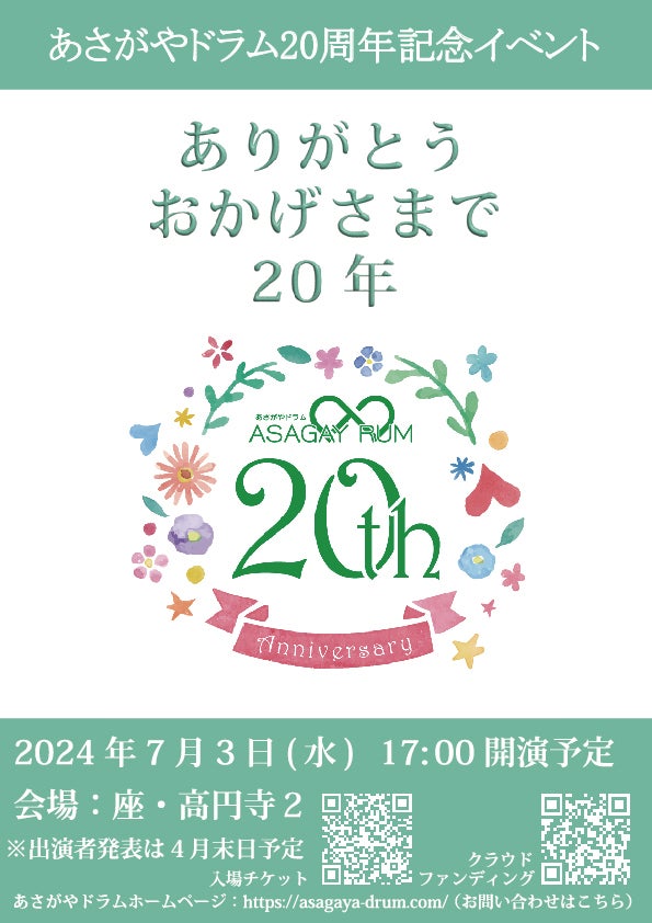7月3日(水)あさがやドラム20周年イベント『ありがとう おかげさまで20年』開催日!