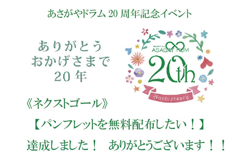 当日会場「座・高円寺」へお越しいただける方もそうでない方も、あさがやドラムに関わってくださったできる限りたくさんの方々に20周年をお祝いしていただけたらと思いプロジェクトを行なうことを決めました!