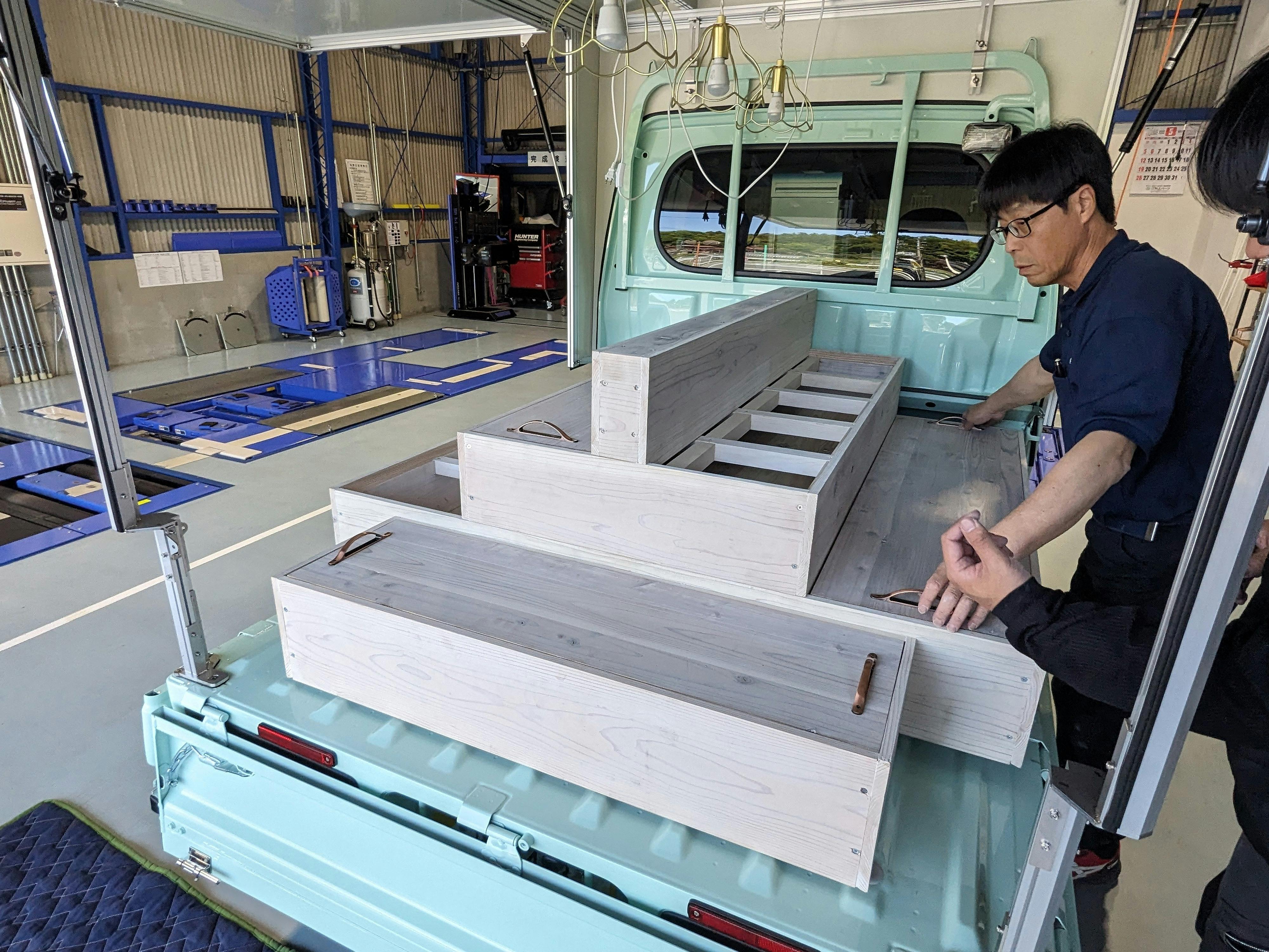 陳列と輸送に対応できるよう細部までわがままを聴いていただき、とても素敵な棚が完成しました!!