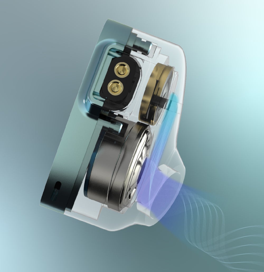 2023年には中低域に特化したコイル式骨伝導ドライバーを搭載した「Wind」で大変好評をいただきました。そして2024年、ウェザーシリーズ第二弾として新たな技術「エアーアシスト振動板」を搭載した「Cloud」が完成しました。