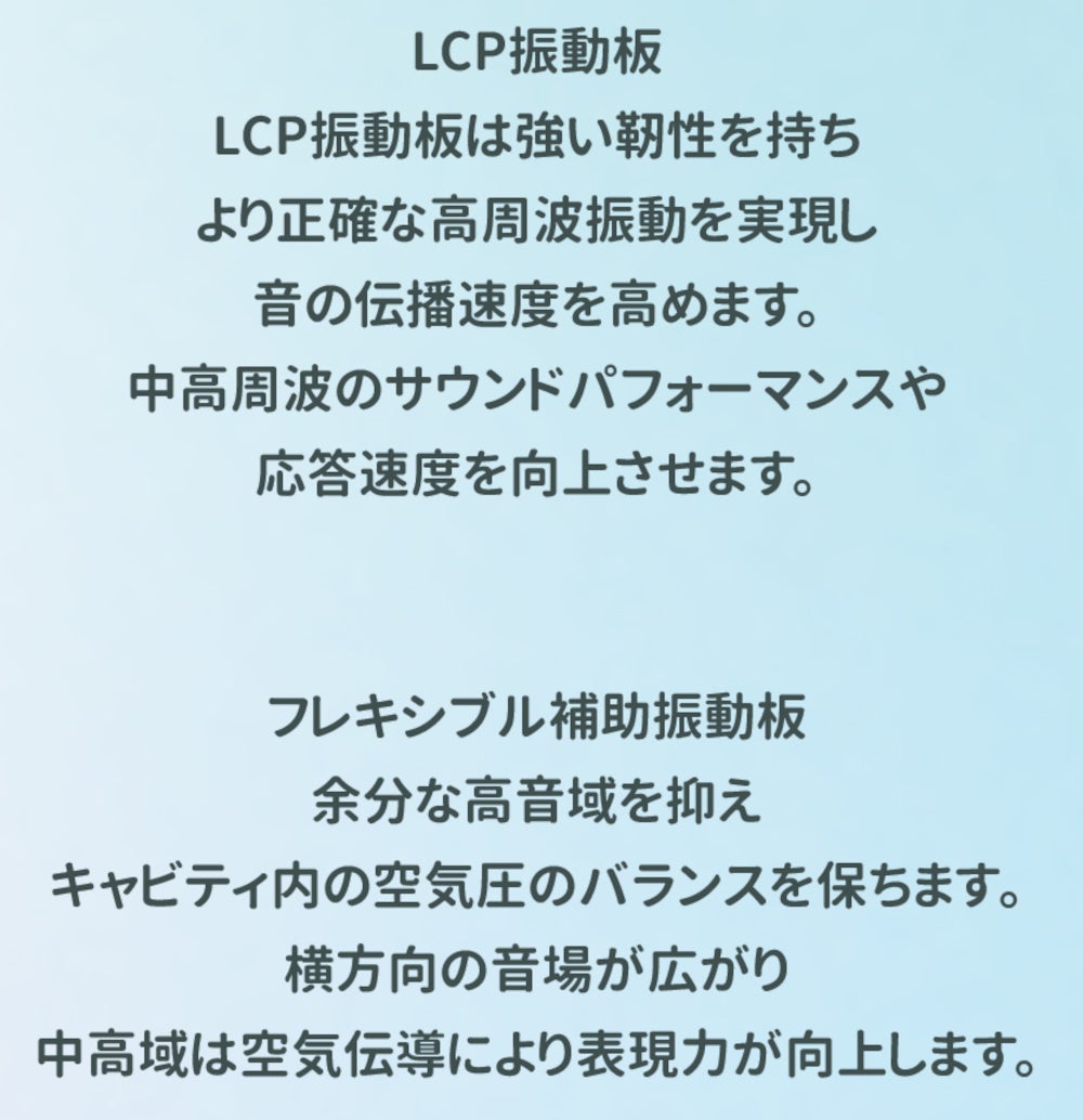 ダイナミックドライバーが動作しているとき、パッシブユニットは空気の流れを通して聞こえます。硬い振動板の高音域のバリを弱め、低音域の柔らかさ、中高音域の伸びを改善し、ポップミュージックの雰囲気と人間的な音の魅力を際立たせます。