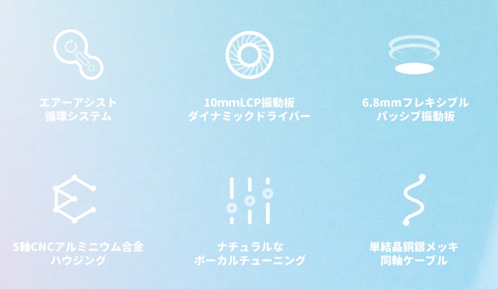 ダイナミックドライバーが動作しているとき、パッシブユニットは空気の流れを通して聞こえます。硬い振動板の高音域のバリを弱め、低音域の柔らかさ、中高音域の伸びを改善し、ポップミュージックの雰囲気と人間的な音の魅力を際立たせます。
