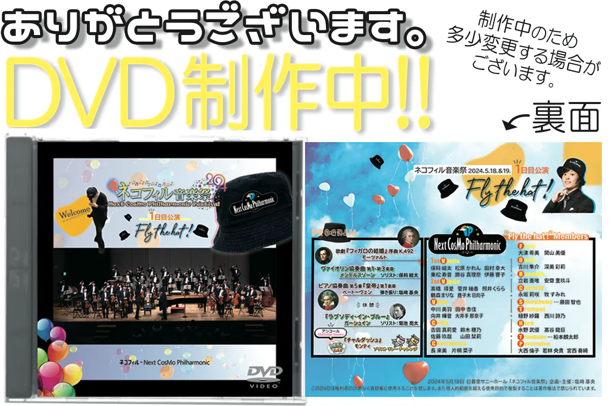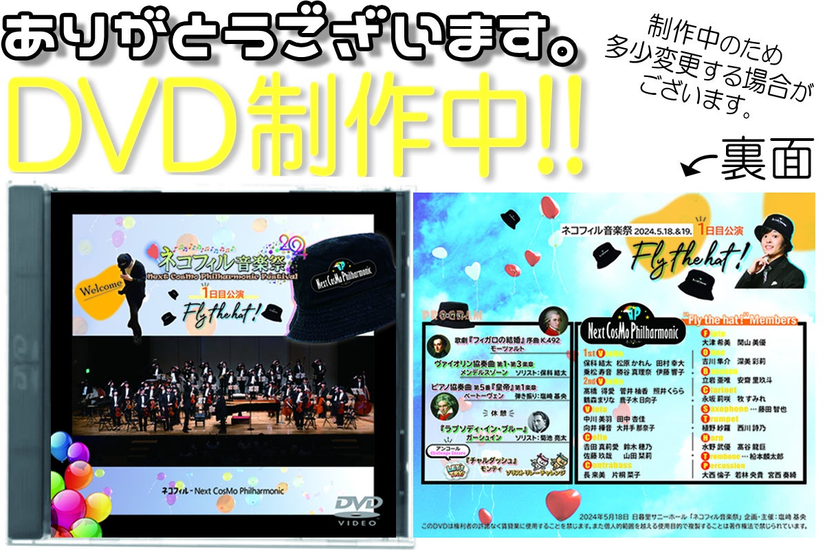 ネコフィル音楽祭 1日目公演『Fly the hat!』のDVDジャケットのデザインが出来てきました!(制作中のため多少変更する場合がございます。ジュエルケースの色はまだ決定されておりません。写真と異なる場合がございます。)