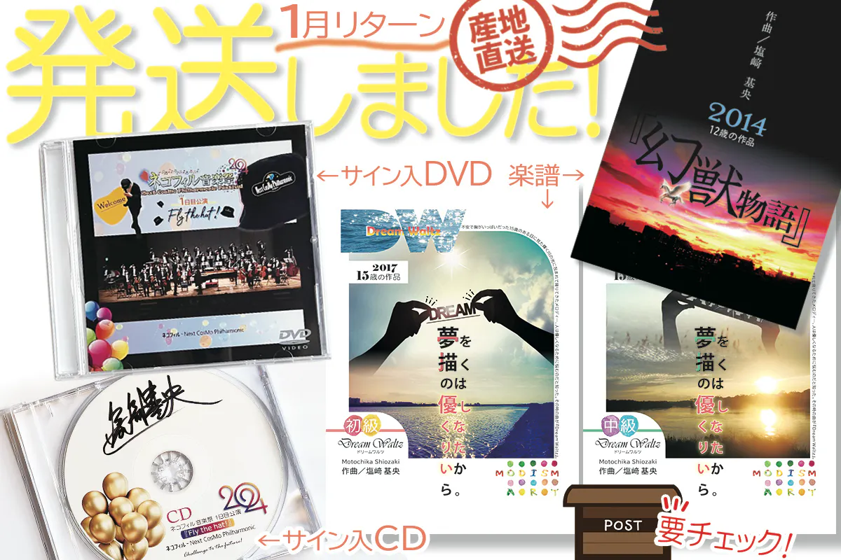 〈1月リターン〉幻獣物語楽譜・ドリームワルツ初級&中級 楽譜・サイン入りDVD・InstagramサインLIVE付DVD・サイン入りCD の発送が完了しました。