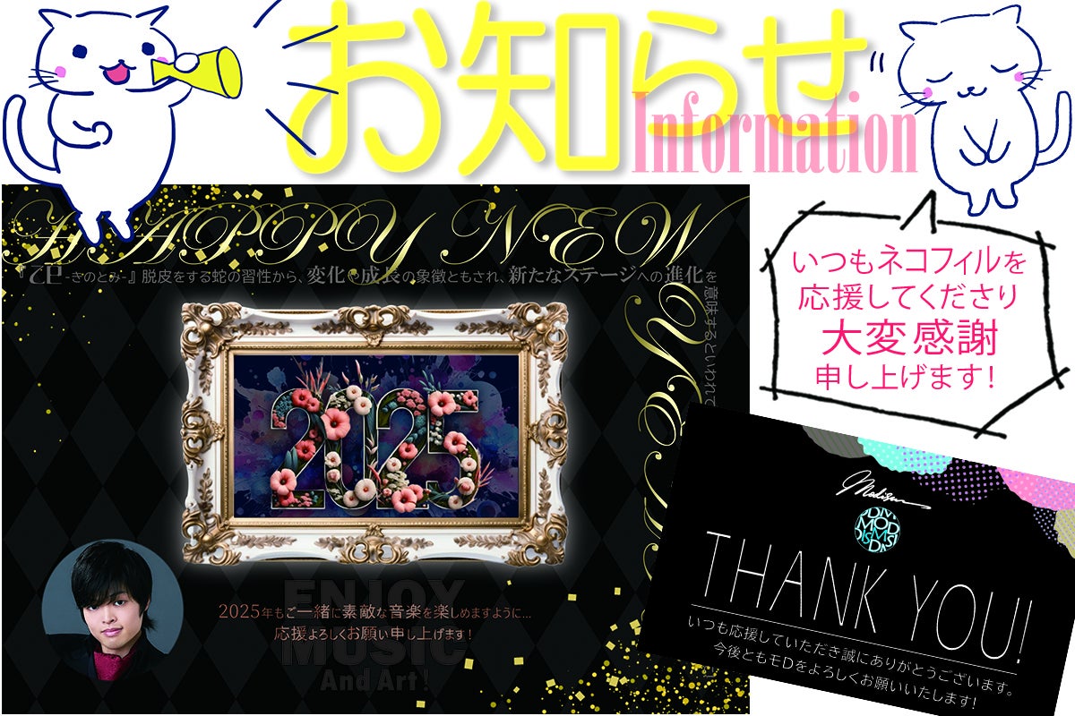 2025年度 新学期スタートですね!皆様、いかがお過ごしでしょうか。2024 ネコフィル クラファン リターンもいよいよ最後の進捗ご報告となりました。〈3月リターン〉ビッキー&モDがあなたのためのサロンコンサートをお届け!・代表モDがあなたのためのサロンコンサートをプロデュース! のリターンが終演いたしました。〈4月リターン〉特別限定企画:モDがあなたのために世界で1つのオリジナル楽曲を作曲!直筆楽譜PDF&モDによる曲の聴きどころ解説動画をお届け! のリターンをお届け完了いたしました。2024年10月13日活動報告「リターンの発送が始まりました」との投稿より実に半年以上の時間をかけ、ついに全てのリターンをお届け完了できましたことは、モD&ネコフィル一同にとっての大きな達成感であり感無量です。大変多くの皆様からの熱い応援やご協力に心より感謝申し上げます。これからも、ますます皆様に楽しんでいただけるよう、仲間と共に力を合わせて頑張ります!どうぞ若き音楽家たちの情熱と未来にご期待ください!そして皆様とご一緒に、さらなる大感動を味わえる日を心より楽しみにしております。皆様との"絆"で実現する、2026年3月15日(日)第3回ネコフィル公演にて一同、お待ちしております!2026ネコフィル公演の情報は、2025年8月10日(日)モD&Yuta デュオリサイタル公演までには発表されます!お楽しみに!それでは皆様、また新たな気持ちでモD&ネコフィルとご一緒に日々を頑張りましょう!お元気で~♪モD&ネコフィル一同