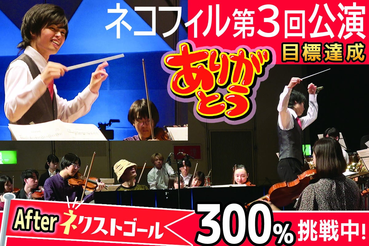いつもネコフィルを応援いただき、ありがとうございます。代表のモD(塩﨑基央)です。皆様からの温かいご支援のおかげで、ついにネクストゴール200%を突破いたしました。さらに、現在265%(投稿時点)を突破しております!200%を達成できたことにより、ここまでのネクストゴール「ネコフィル第3回公演」の会場費をまかなうことができ、公演が実現可能になりました。誠にありがとうございます!第三回公演を開催し、Z世代 ネコフィルならではの情熱と感動を皆様にお届けしたい!という想いで、公演内容を現在構想中です。前回公演「ネコフィル音楽祭」期間中に実施した「"一流音楽家によるマスタークラスStory"企画」を映像作品にまとめた動画を公開いたしました!神奈川フィル元コンサートマスターでもある国内トップ若手奏者の﨑谷直人さんから、ネコフィルが受け継いだ"大切なもの"。6月22日(土)21時に以下のYouTubeからプレミア公開です!演奏を聴くだけではわからなかった、より"深イイ"オーケストラの面白さが詰まっております。オケがもっと好きになること間違いなしです!是非お楽しみください↓ネコフィルは、第3回公演にて更にお楽しみいただける内容を実現するために、ネクストゴールの300%に挑戦中です。あと少しで到達いたします!皆様にネコフィルをよりお楽しみいただけるような、新リターンも今後追加される予定です!ハートマークの「お気に入り登録」をしていただけますと、最新情報を最速でお届けできますため、ぜひよろしくお願いいたします。今後とも応援のほど、どうぞよろしくお願いいたします。