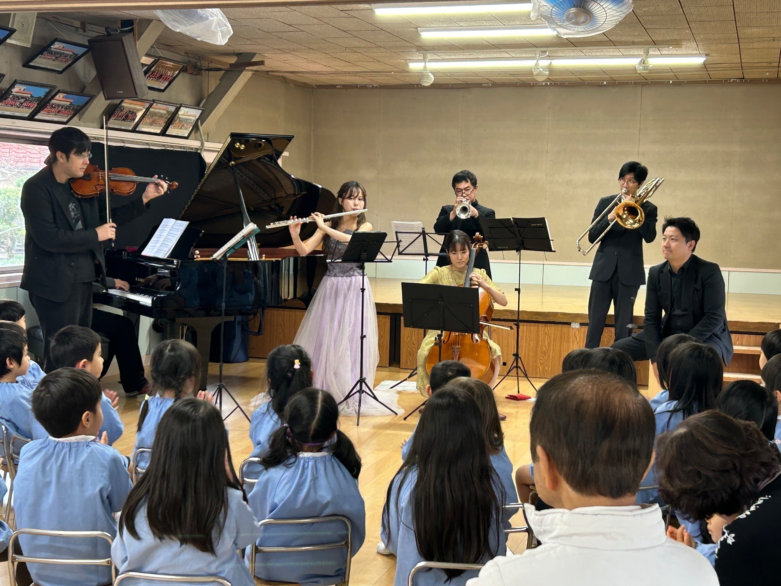 現在はバイオリン、チェロ、ピアノ、フルート、クラリネット、トランペット、打楽器の編成で