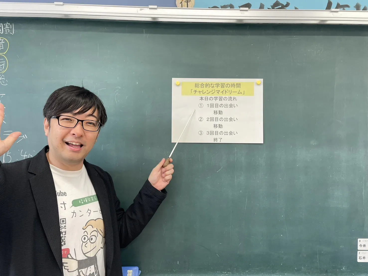 今回1回は 自己紹介 夢を持つよさについて話す これを6年生3クラス各10分で回すということでした。