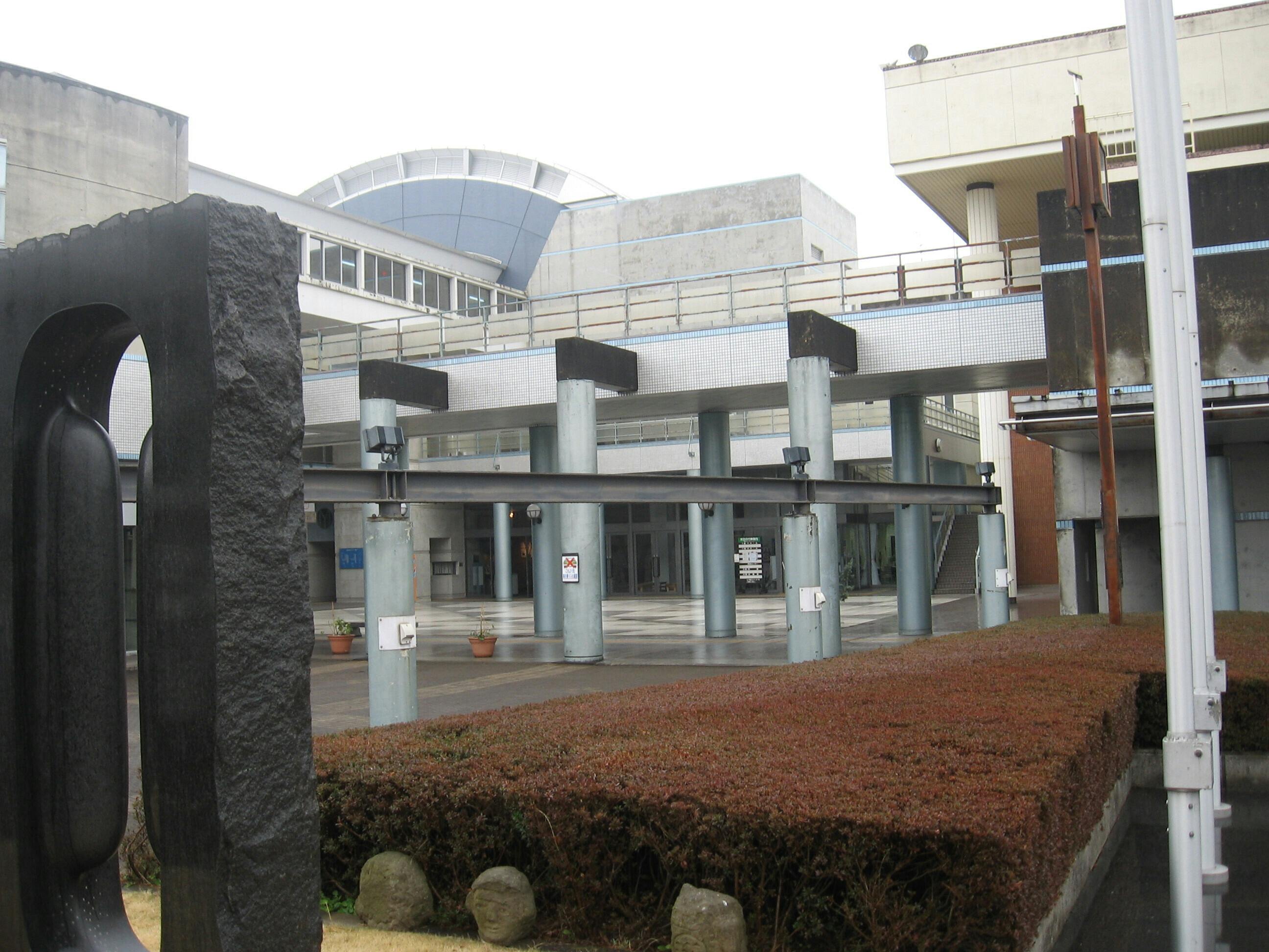 ↑会場となる日向市文化交流センター(左側の建物)と日向市中央公民館(右側の建物)