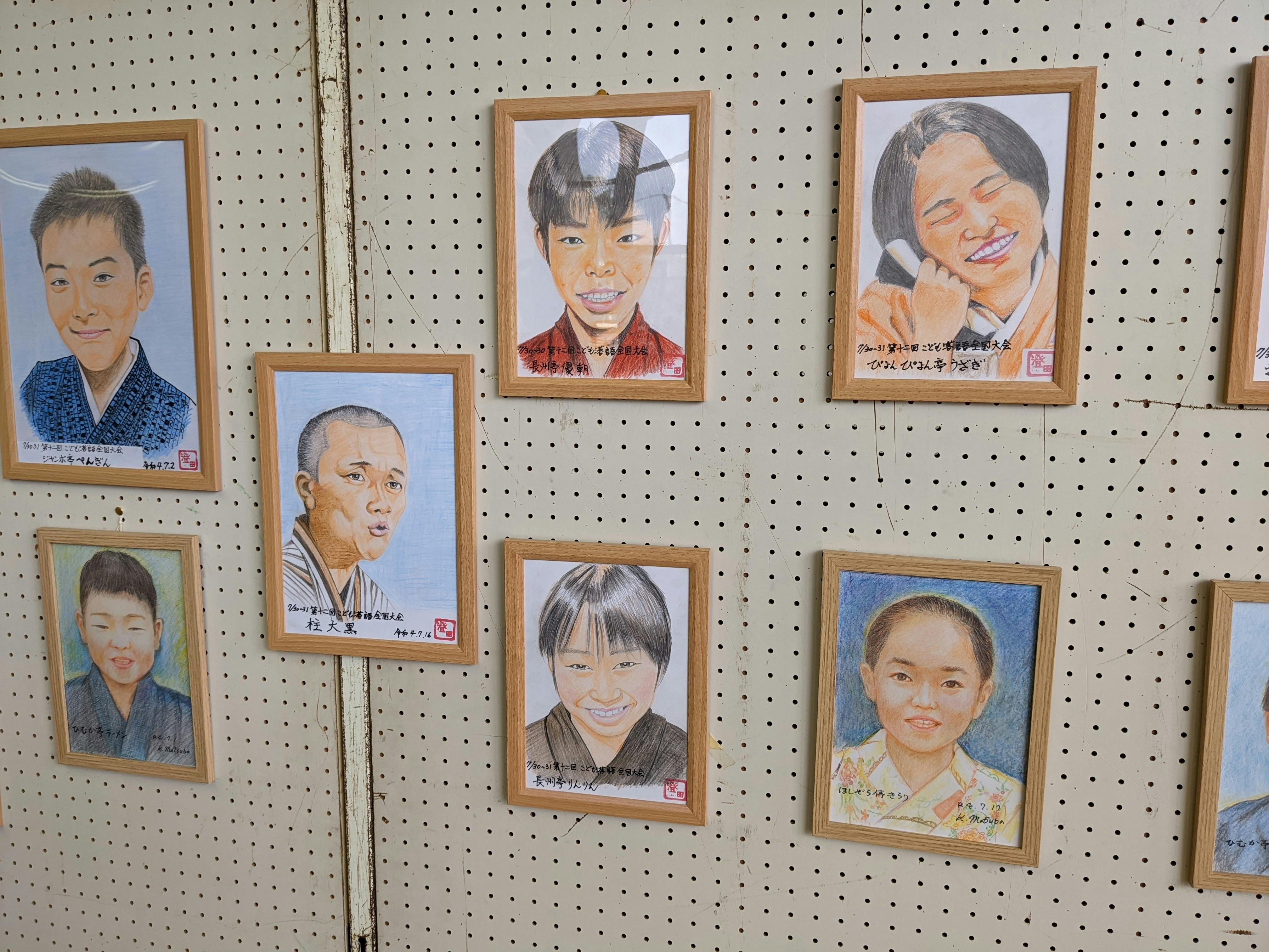 ↑日向市内の画家が描く似顔絵も出場記念品のひとつで喜ばれています
